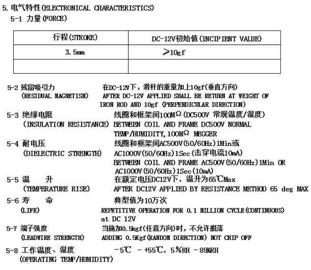 電壓: | DC12V | 行程: | 3.5MM | 電阻: | 40歐 | 功率: | 3.6W |